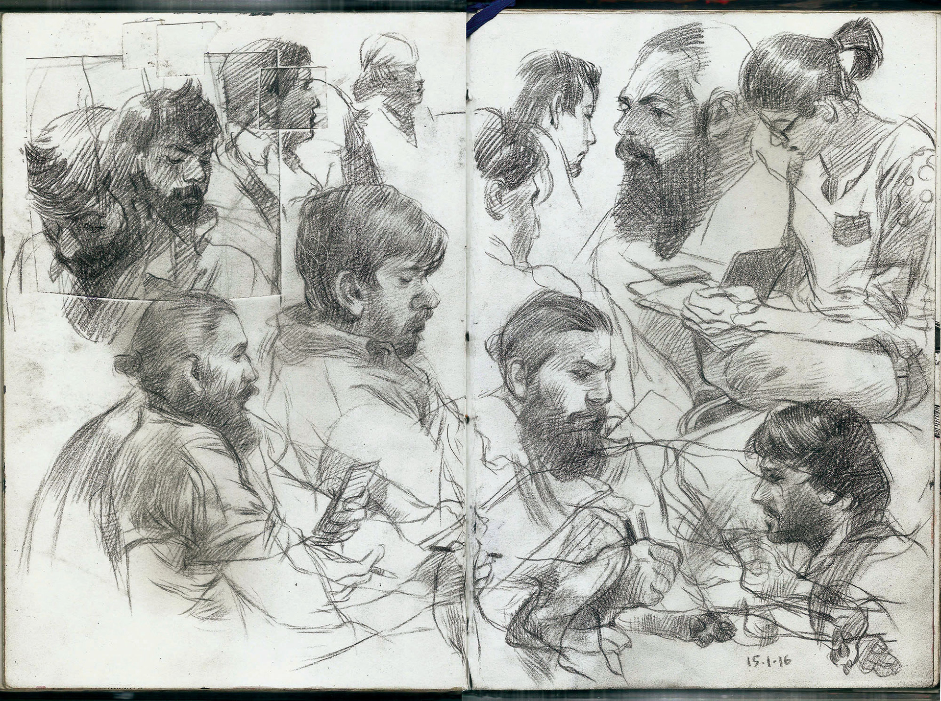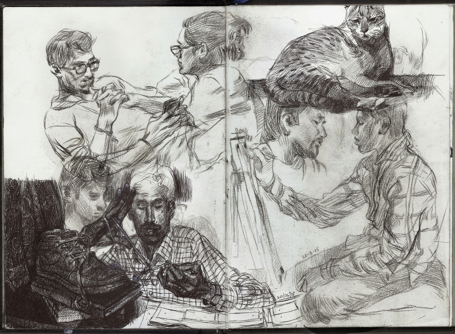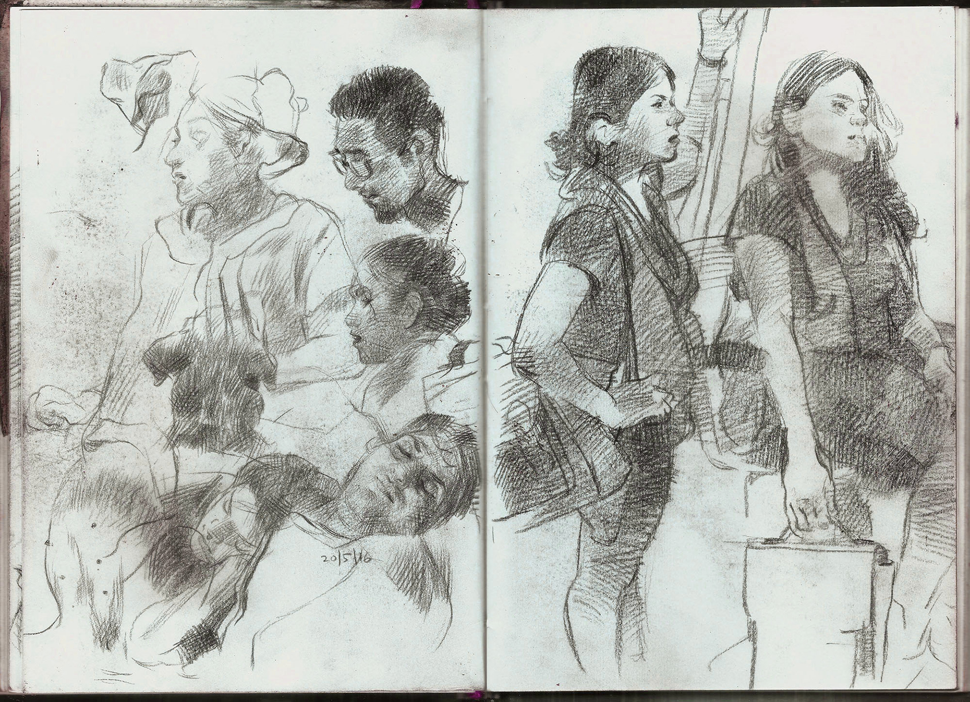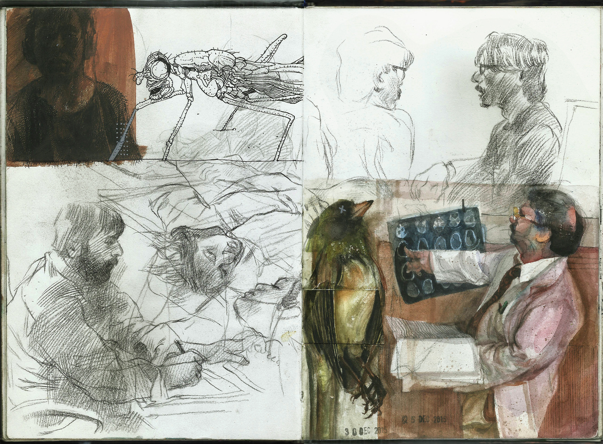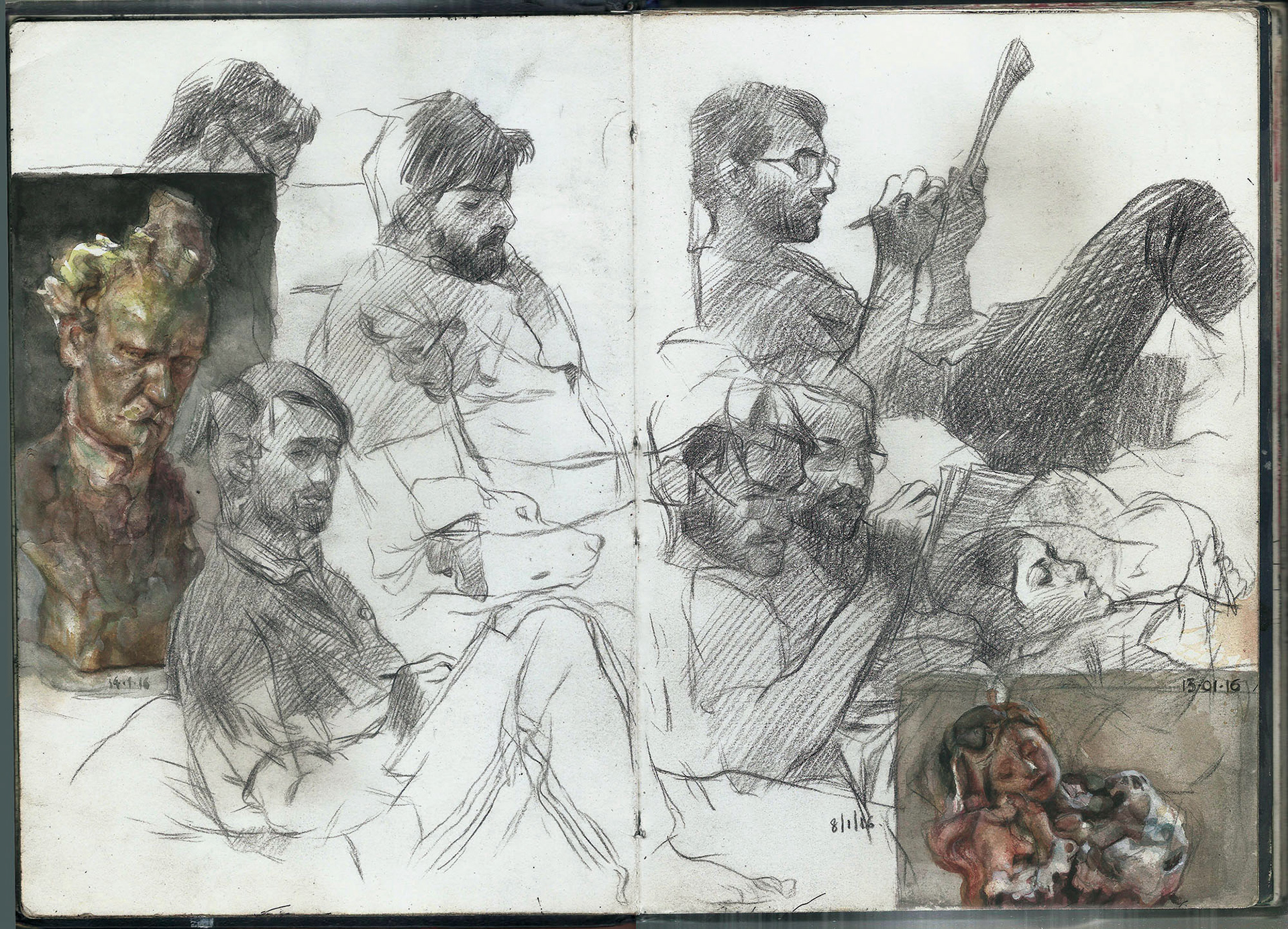 Spreads from my life drawing sketchbook from this year. Some of the ballpoint and watercolour drawings are from photo references.