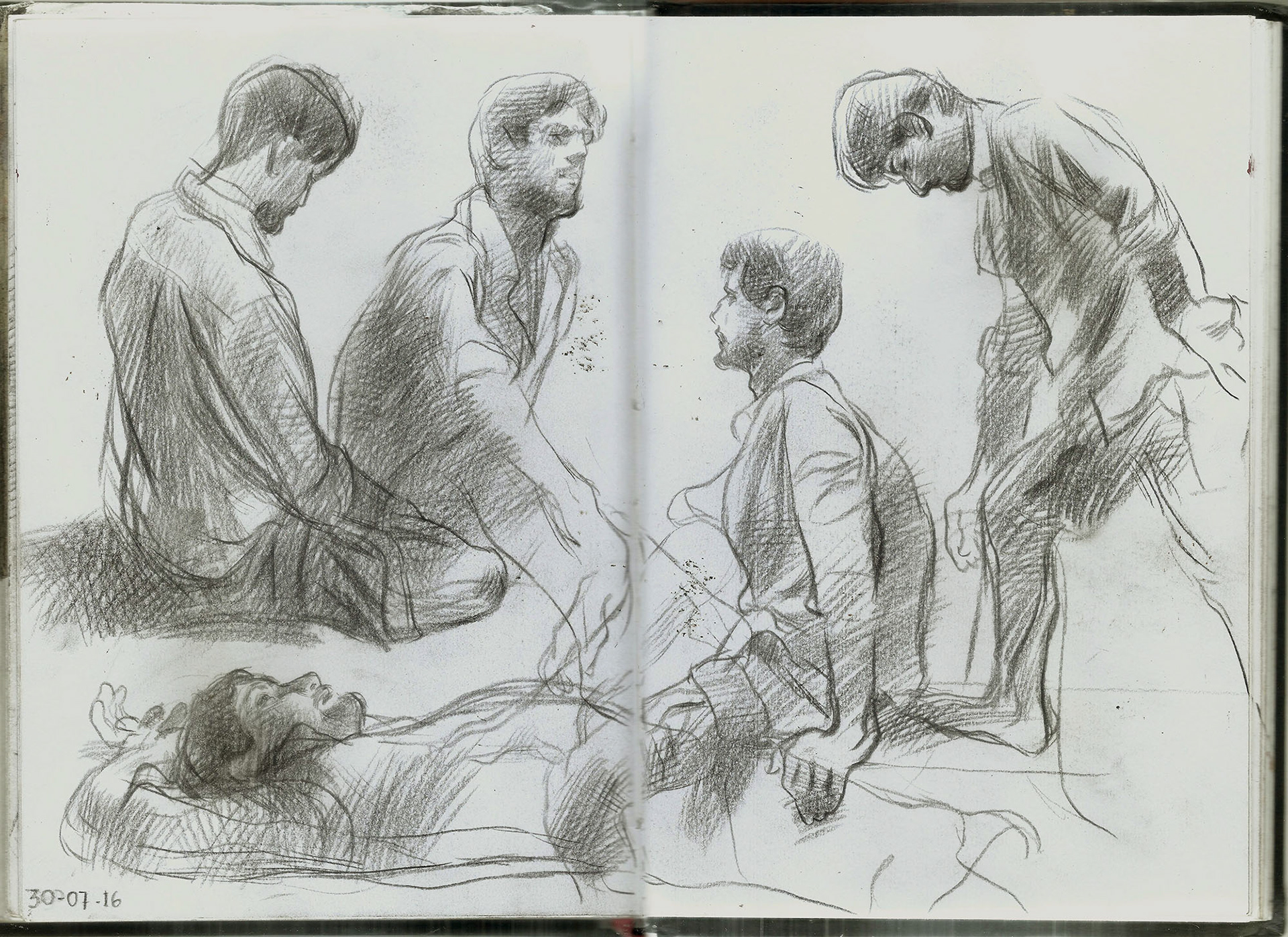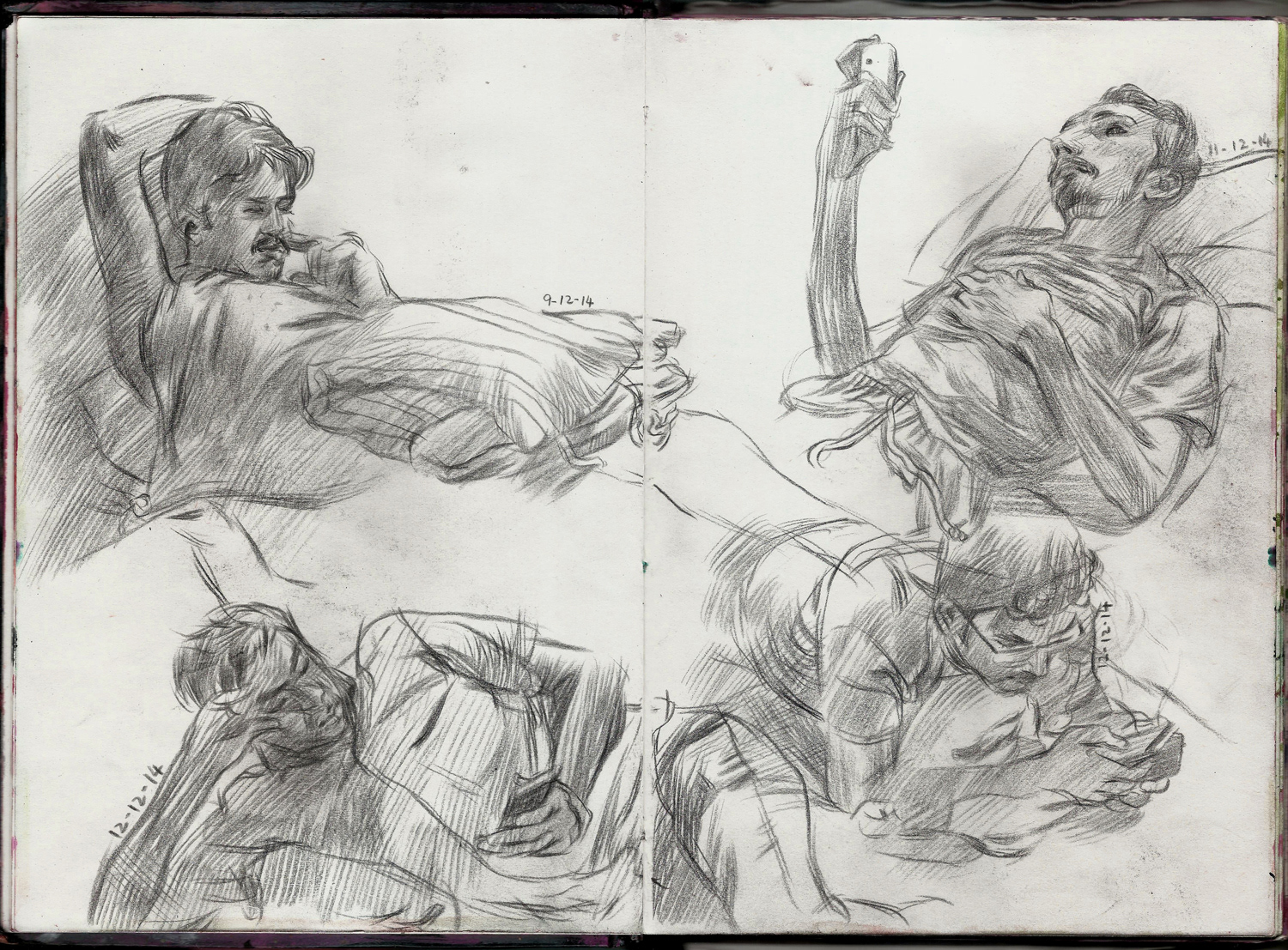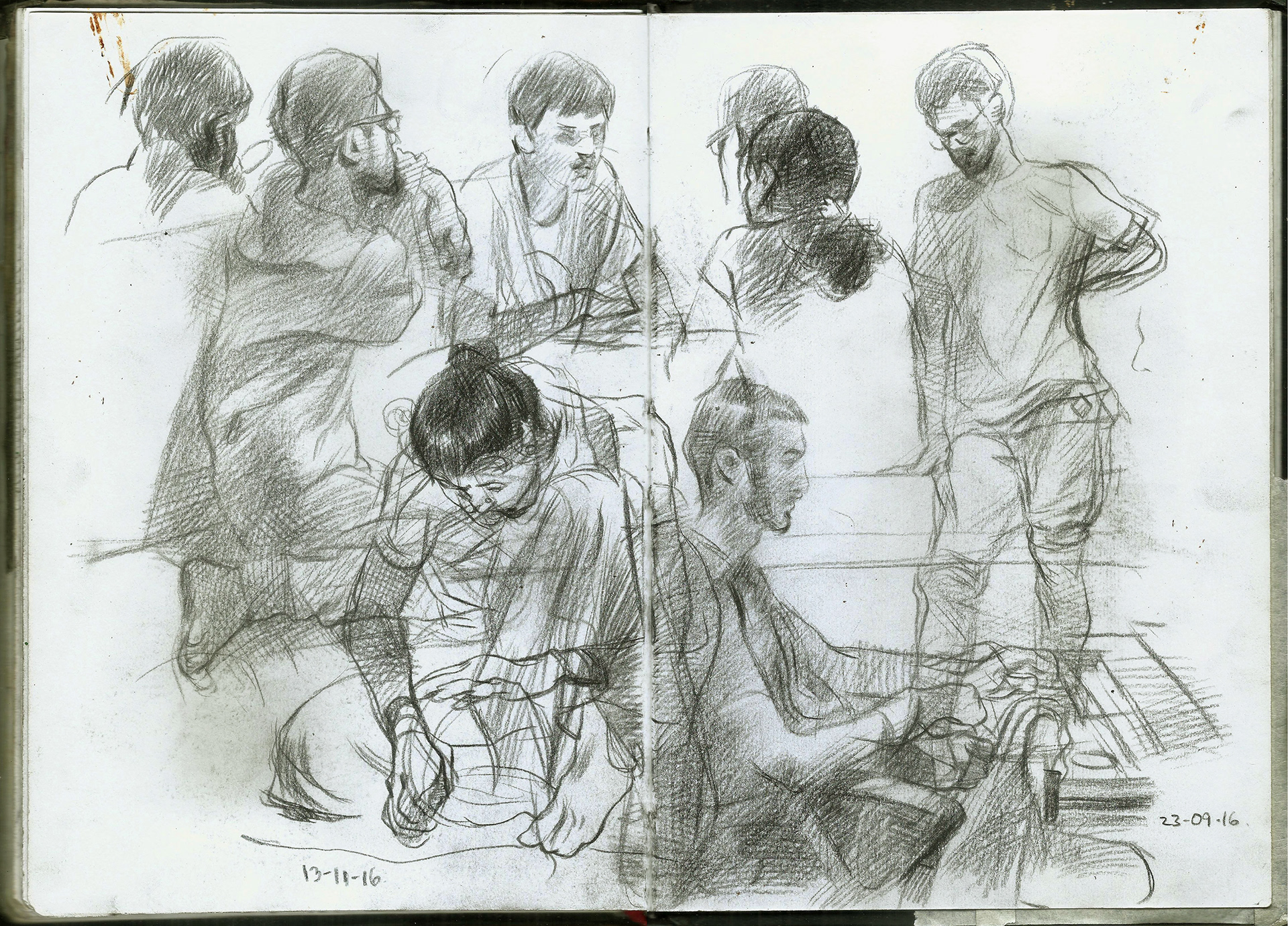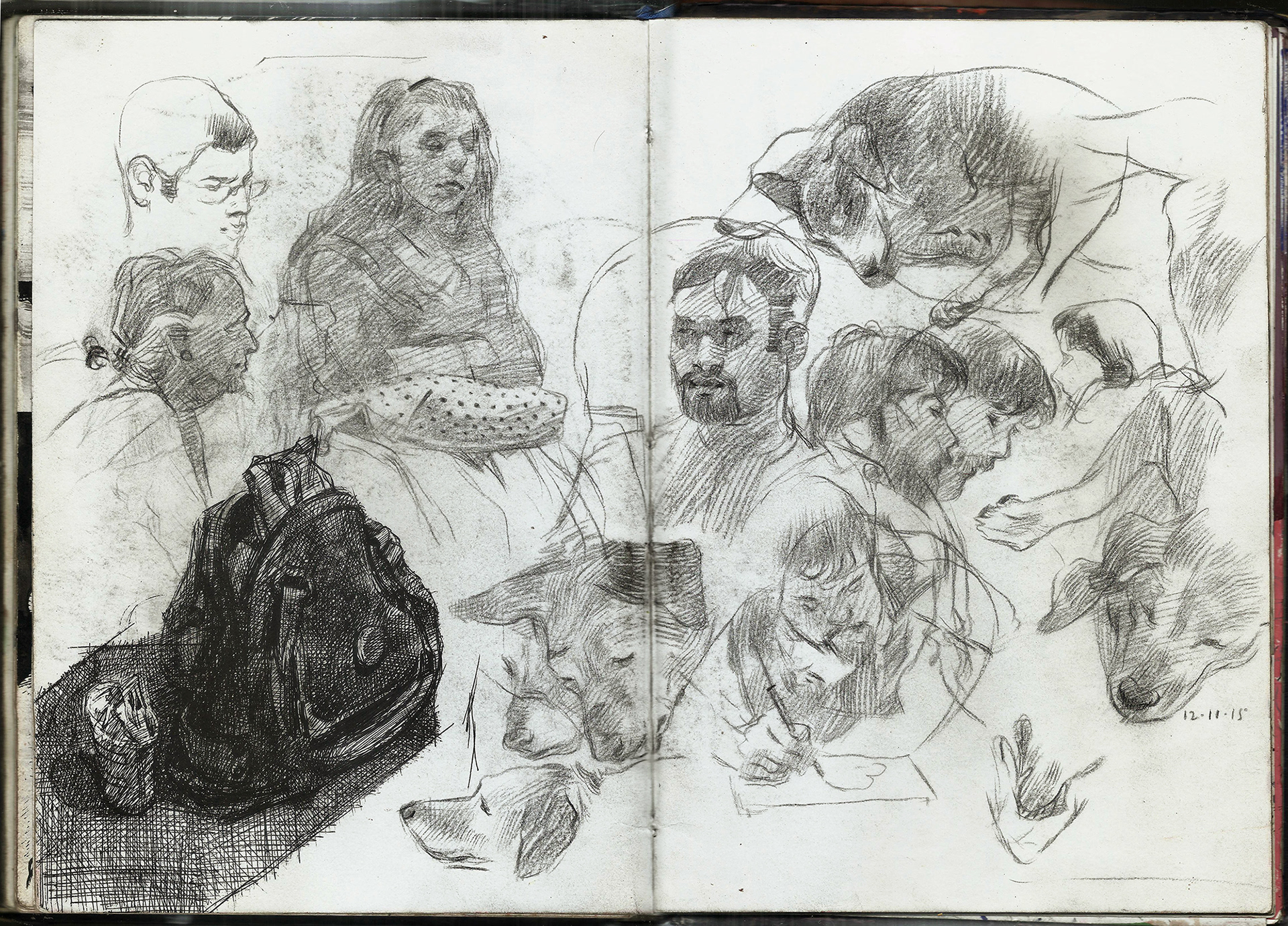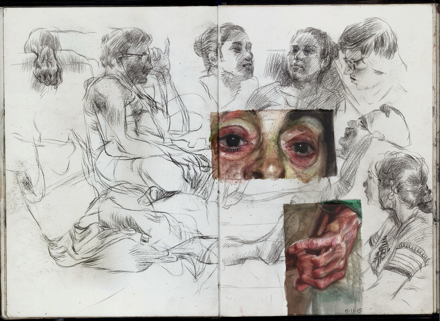 Spreads from my life drawing sketchbook from this year. Some of the ballpoint and watercolour drawings are from photo references.