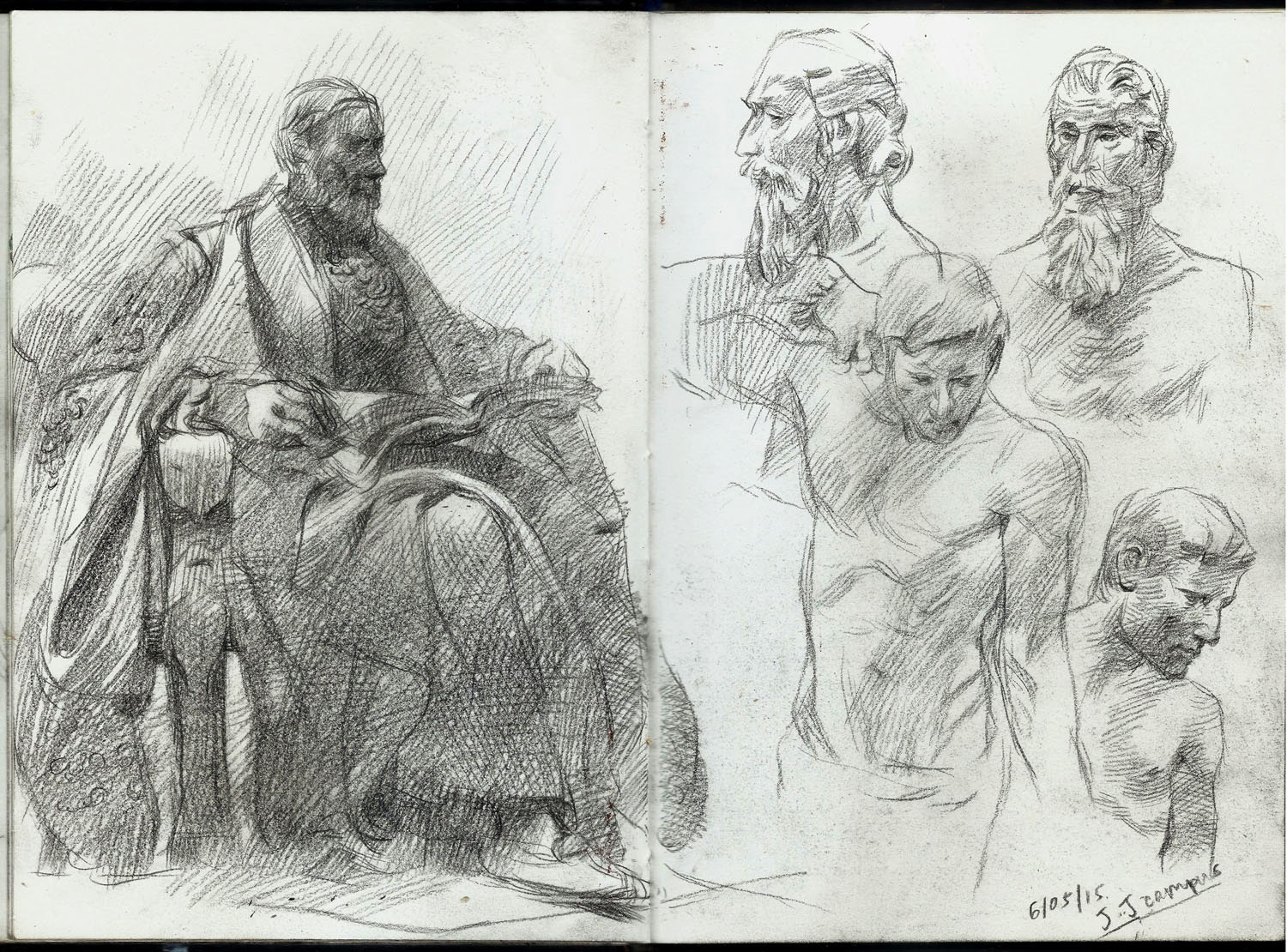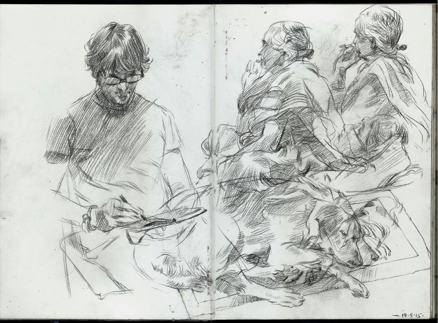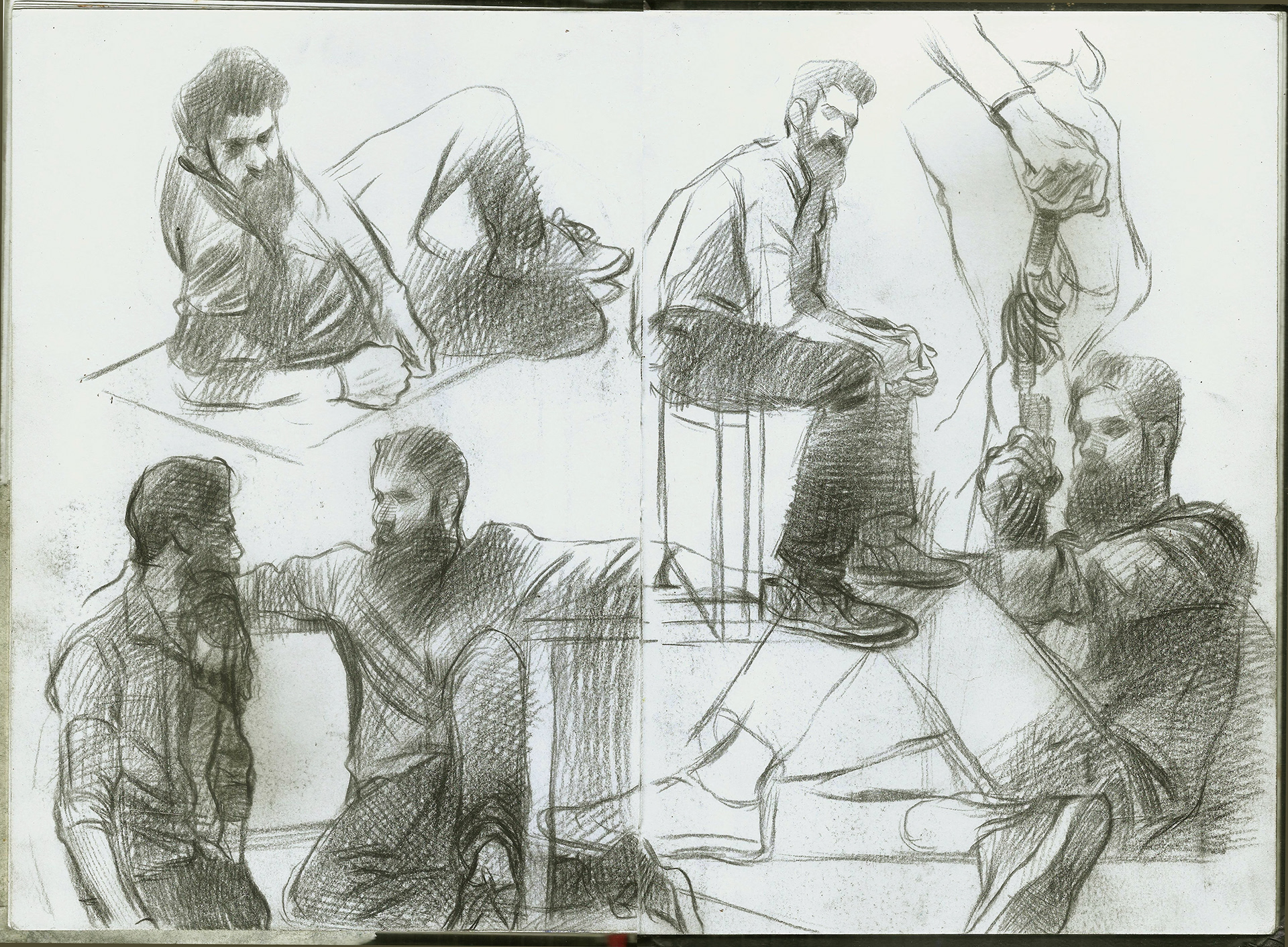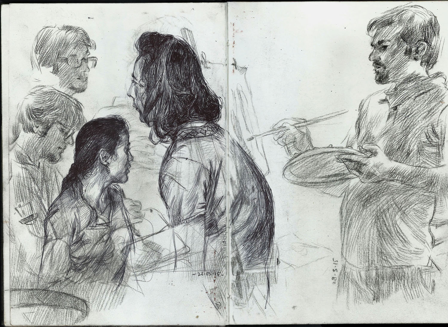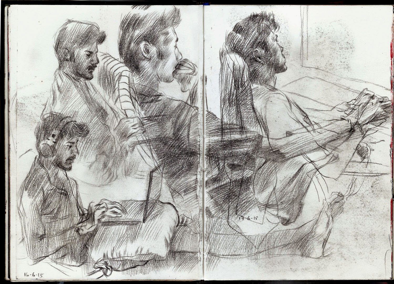 Spreads from my life drawing sketchbook from this year. Some of the ballpoint and watercolour drawings are from photo references.
